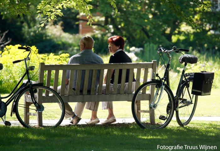 Heerlijk fietsweer en zo te zien van over de grens. Mooi bankje!